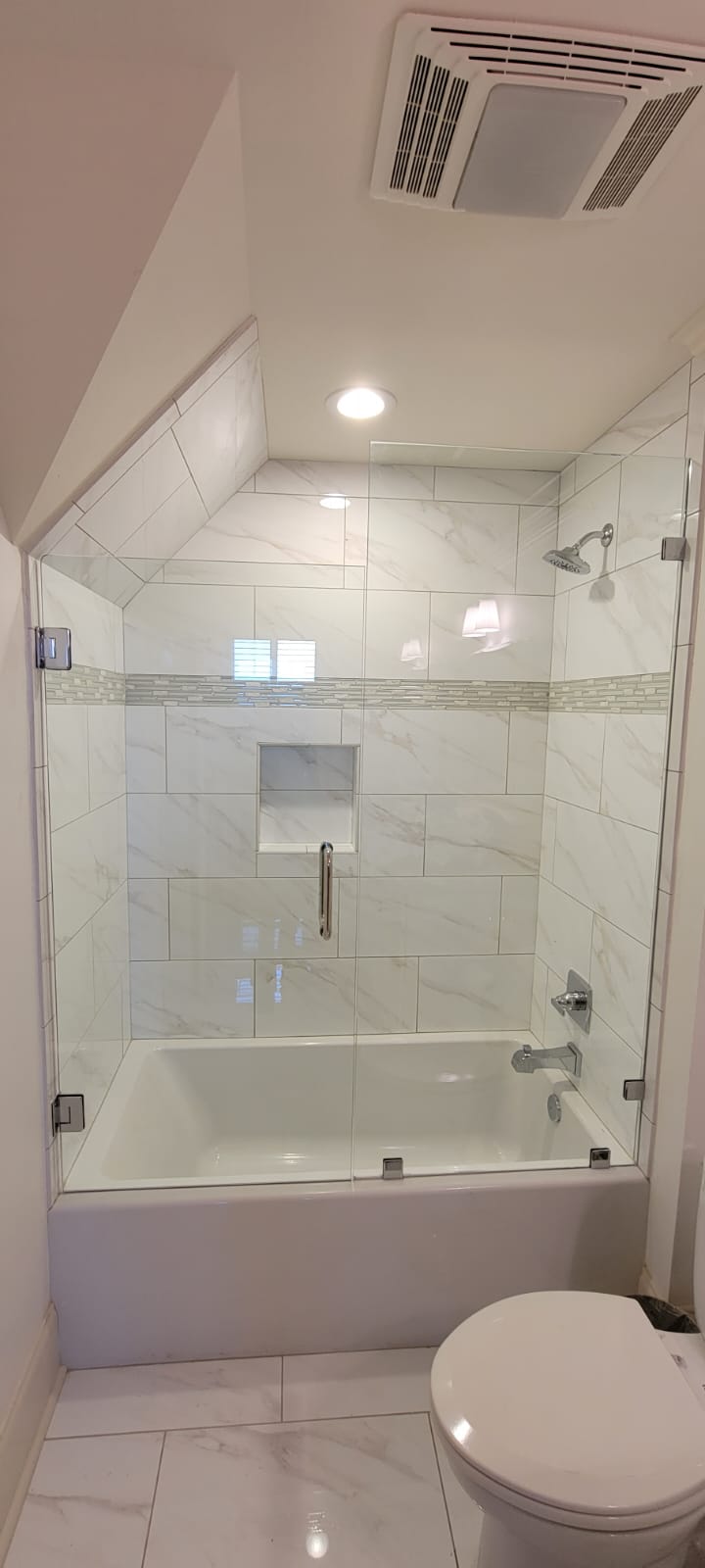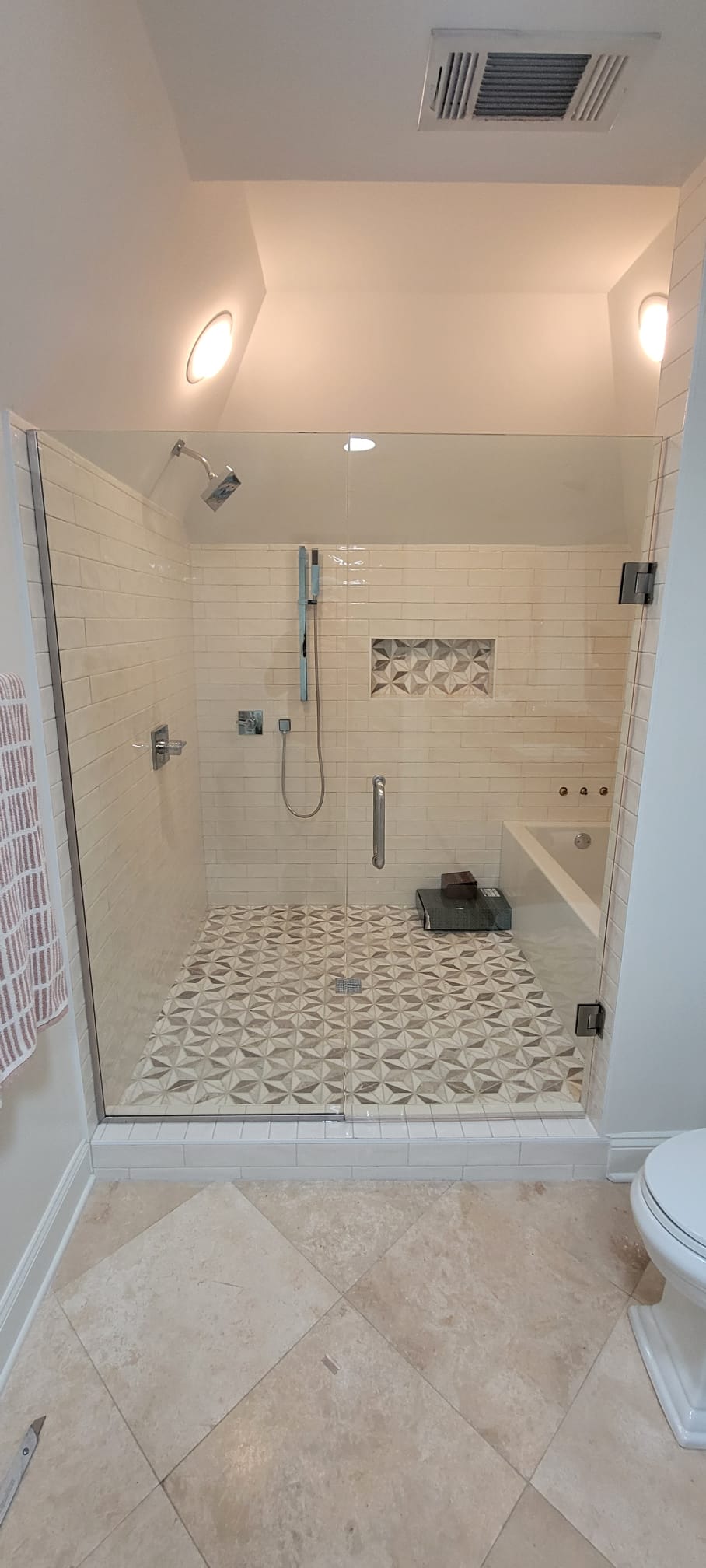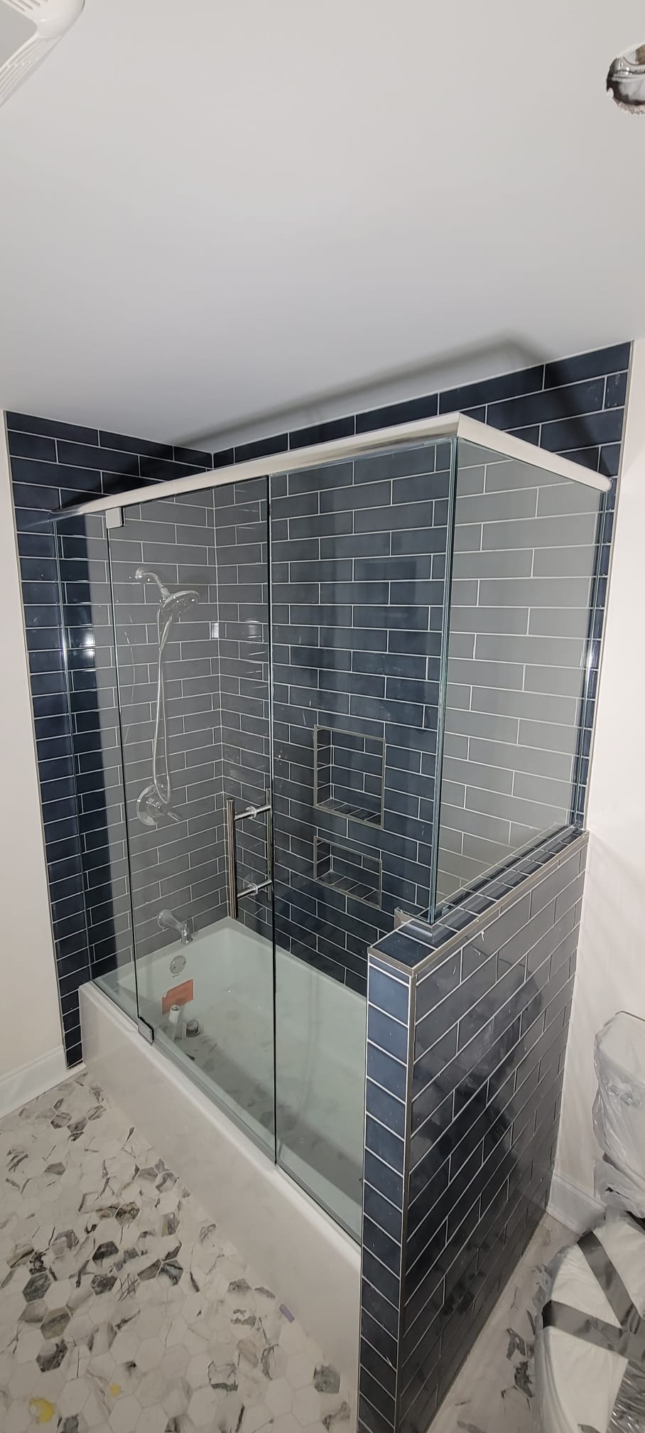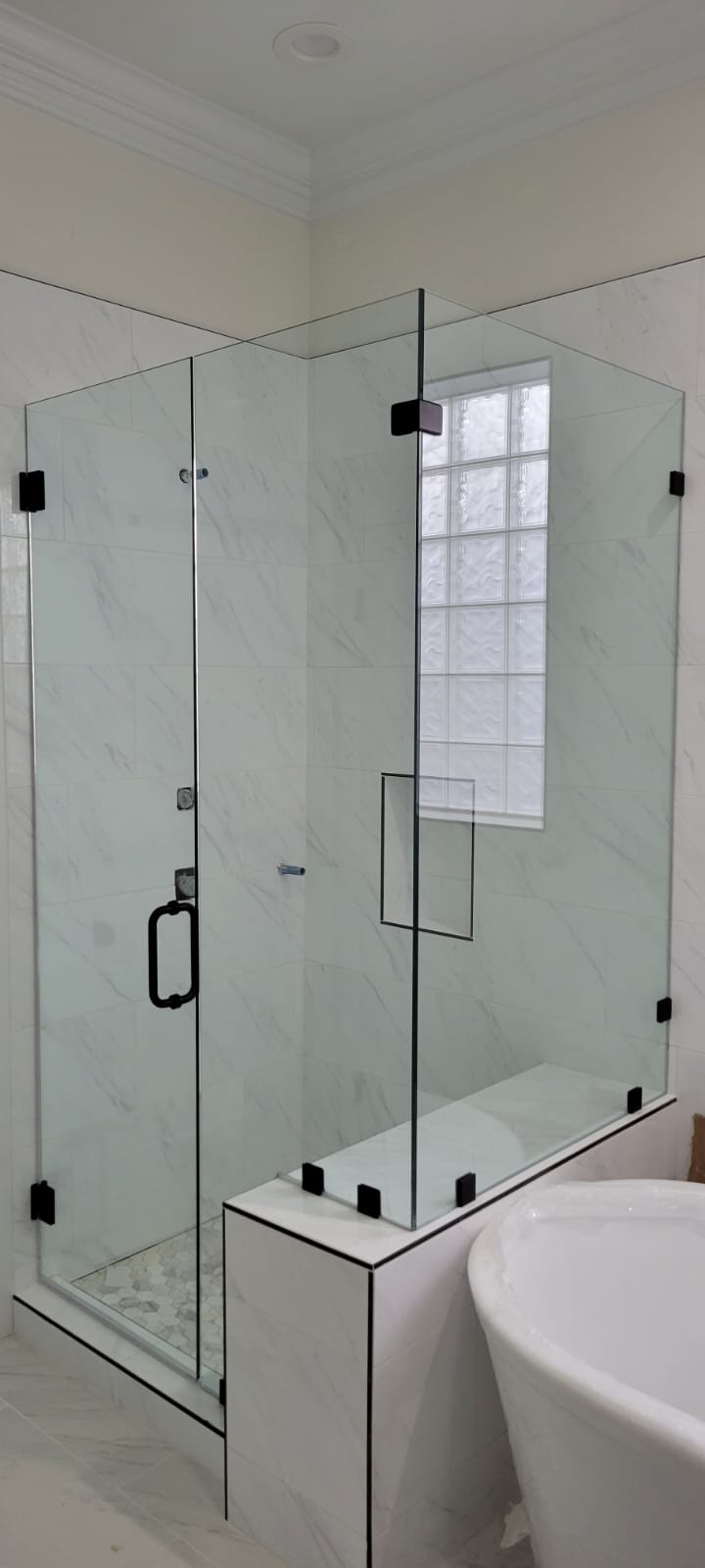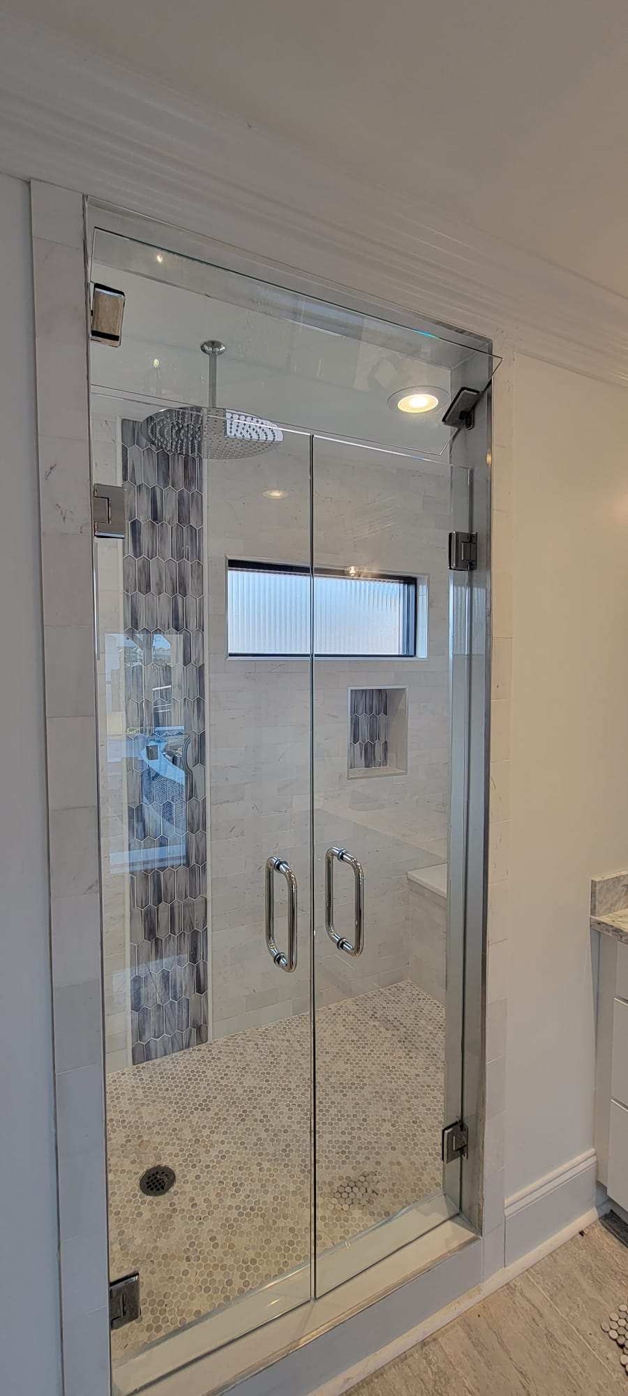 Check out our portfolio of beautiful custom shower enclosures! We customize each and every shower to fit your space and design. We offer frameless & sliding shower doors & different hardware styles & colors to make your dream bathroom come to life!